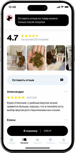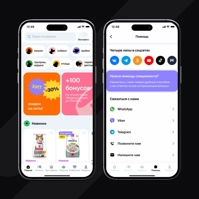 Мы разрабатываем и сопровождаем мобильное приложение, в котором реализованы ключевые функции — от личного кабинета питомца до гибкой системы оплаты