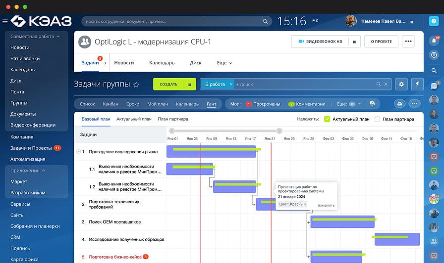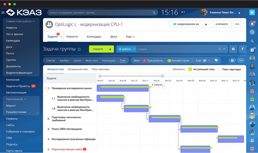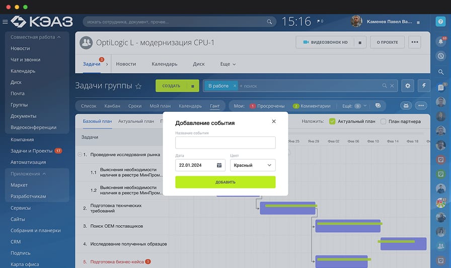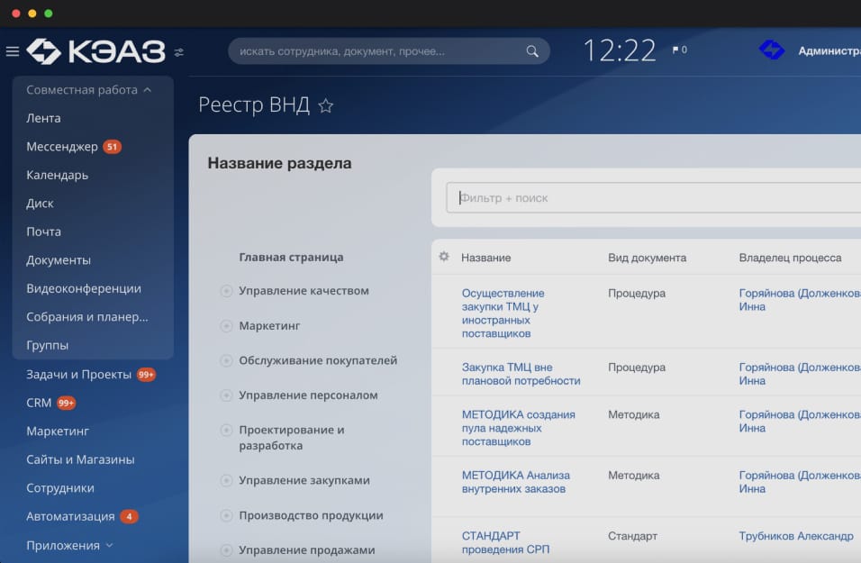 Проект представляет собой корпоративный портал на базе Битрикс24, который служит центром интеграции всех бизнес-процессов и обеспечивает удобный доступ к внутренним процессам и информации.