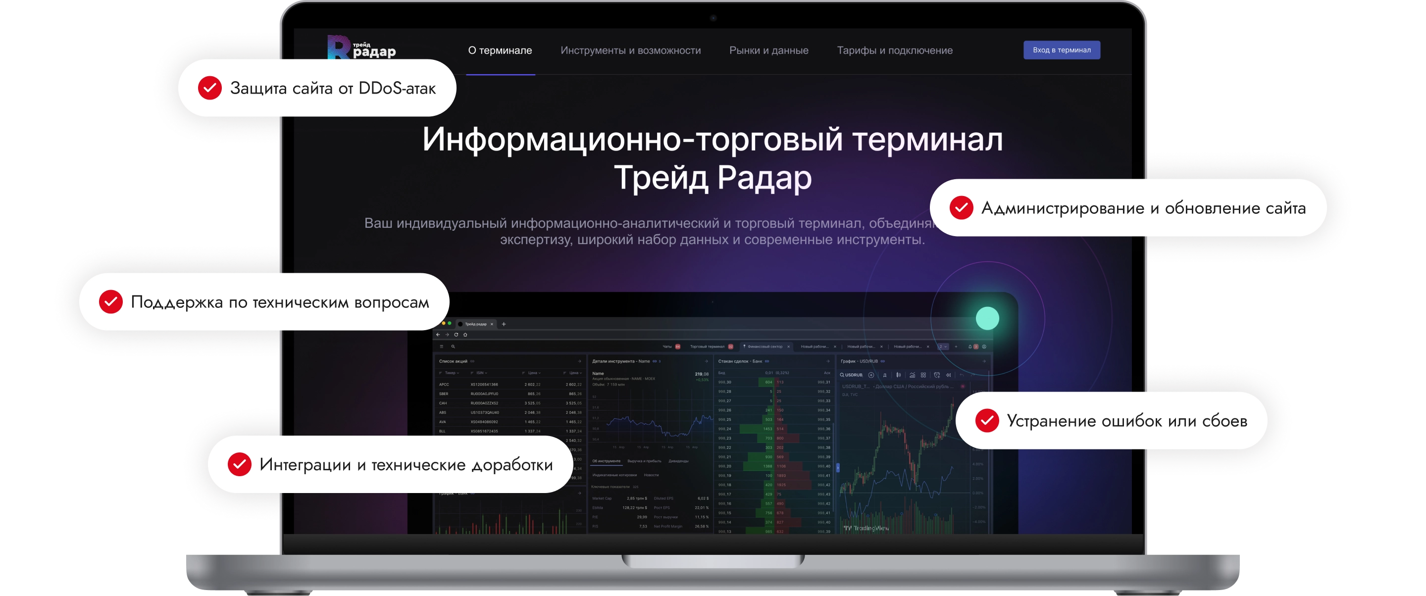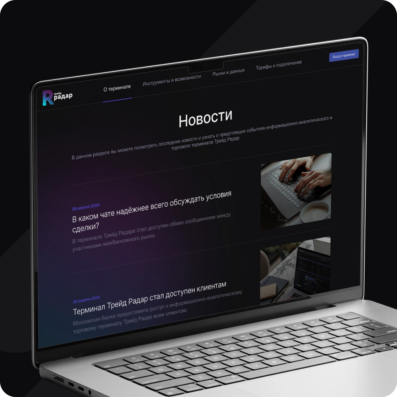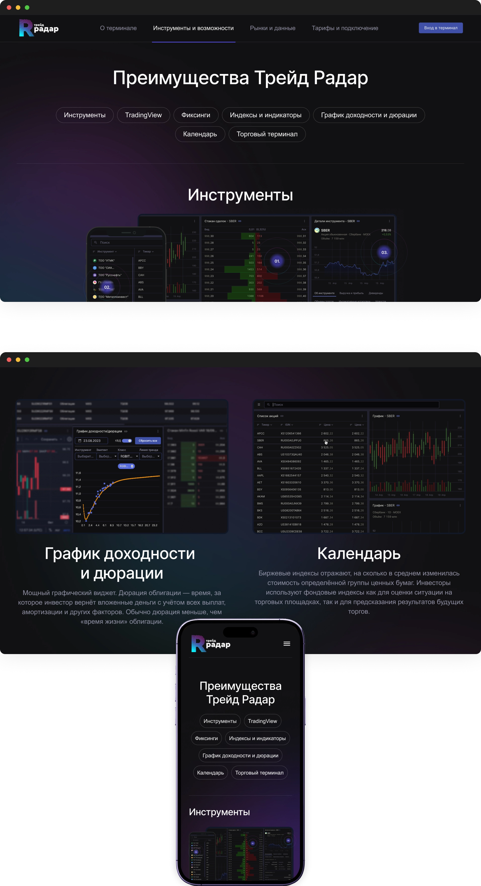 Рассказывает о сервисе, объясняет его возможности и привлекает пользователей. Вход в терминал позволяет зарегистрированным клиентам получить доступ к торговым инструментам и управлять своими сделками.