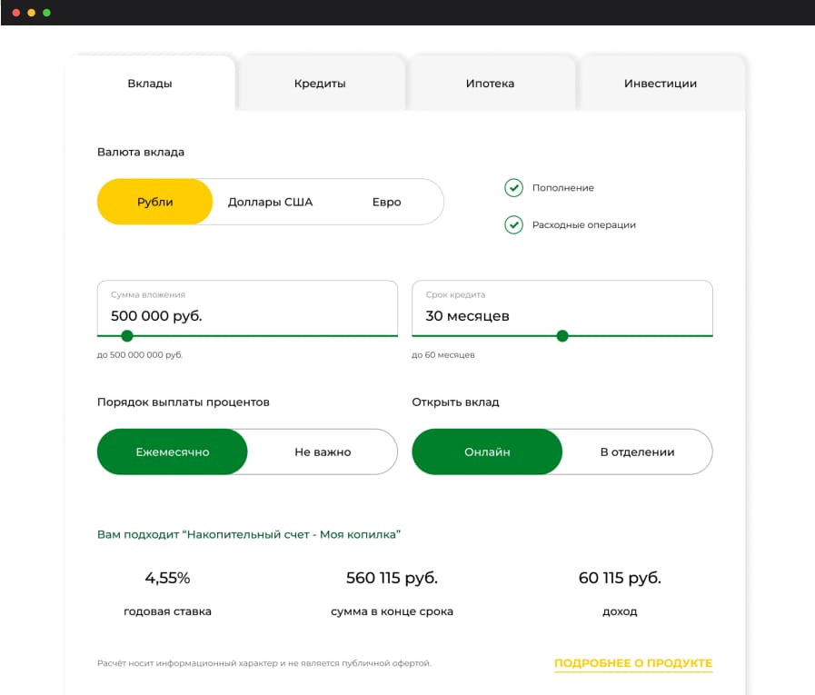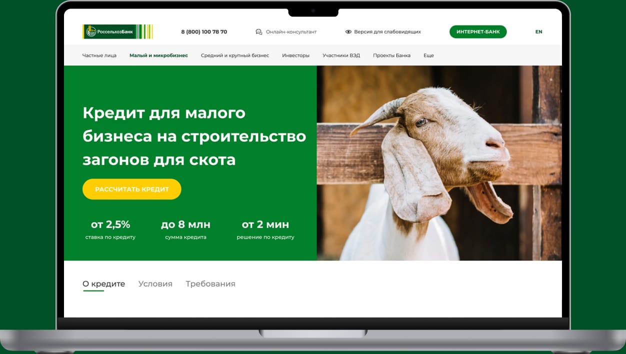 Для Россельхозбанка мы разработали интуитивно понятный интерфейс с удобной навигацией, адаптированной