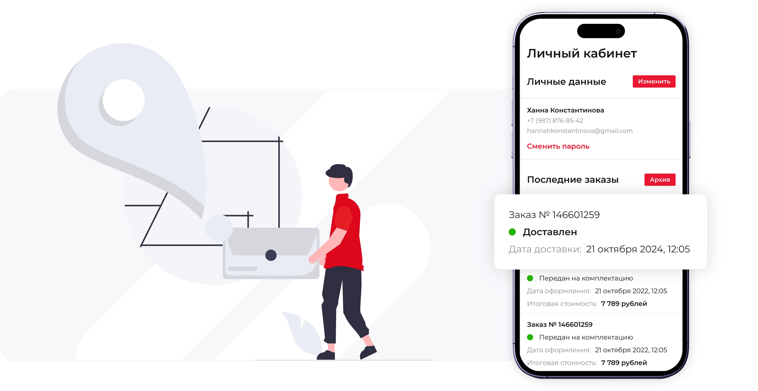 Личный кабинет с историей заказов и промокодами